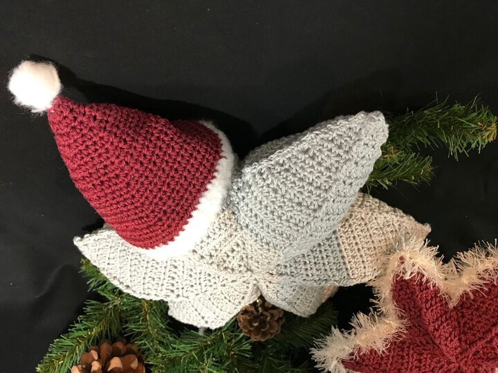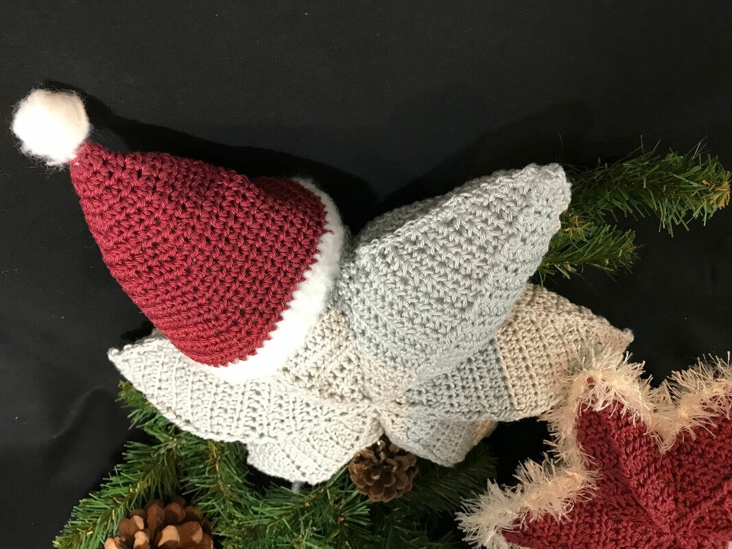 Wolle: Schachenmayr Catania Original und Catania Fine, je nach verwendeter Größe des Sterns 1-3 50g-Knäuel. Super lassen sich hier auch diverse Wollreste verarbeiten. Für die Fransen und den Rand der Nikolausmütze haben ich folgende Wollreste verwendet: Eskimo doubler knitting, Farbe 5211 Natural by Stylecraft und Pilou Plus, Farbe 129 von Phildar.