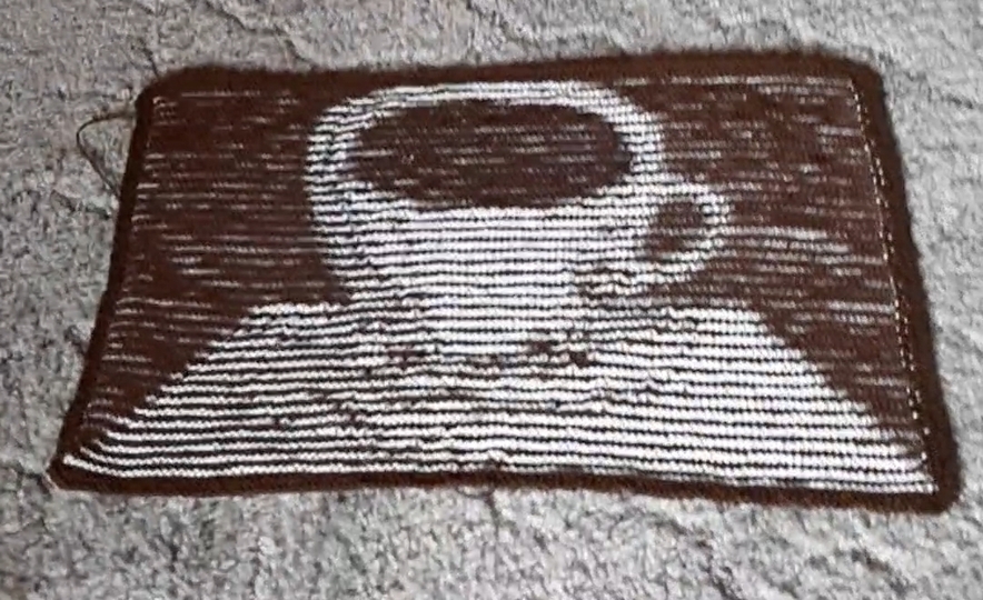 Hiermit bekommt Ihr eine Vorlage für ein Tischset mit einer Tasse in Illusions- / Schattenstricktechnik, bei der zusätzlich die anamorphe Technik angewendet wurde. Dieses Tischset ist ein kleines optisches Meisterwerk, bei dem ihr sehen könnt, wie aus einer großen Tasse Kaffee eine kleine Tasse Kaffee wird, je nach Blickwinkel.