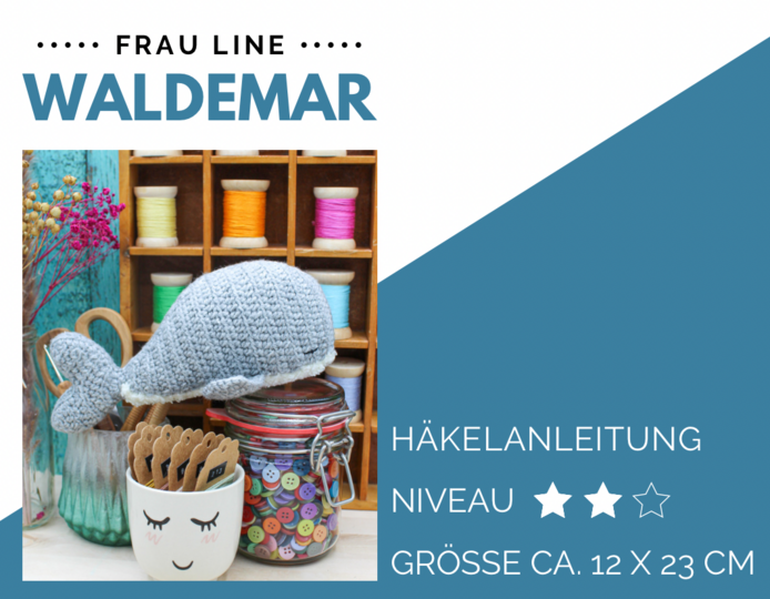 Inhalt: Häkelanleitung für Amigurumi/Kuscheltier „Waldemar, der Walfisch“ (PDF)