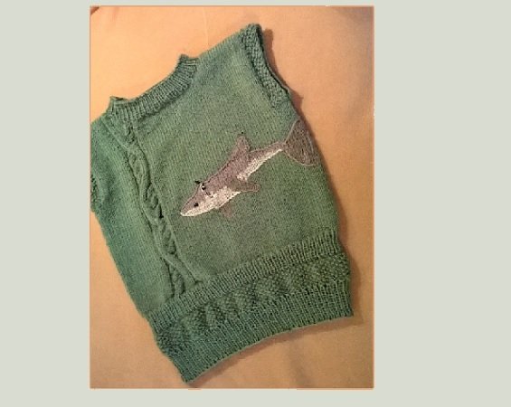 Der Bauarbeiter ist passe, ein Haifisch war zurzeit aktuell. Der nächste Wunsch ist auch schon da. Ein Dinosaurier soll auf dem Pullunder sein! Aber daran tüftle ich noch