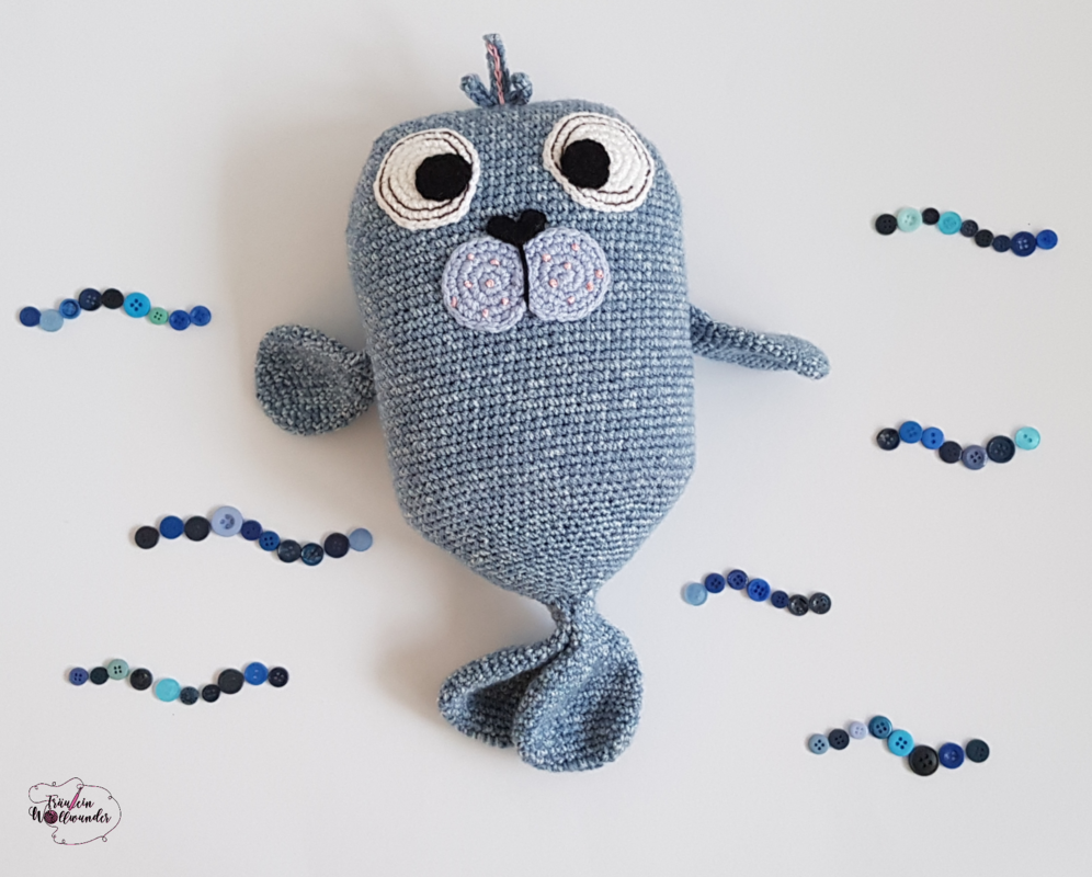Du bekommst beim Kauf eine vollständige, bebilderte Anleitung zum Nachhäkeln der Robbe.