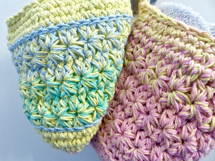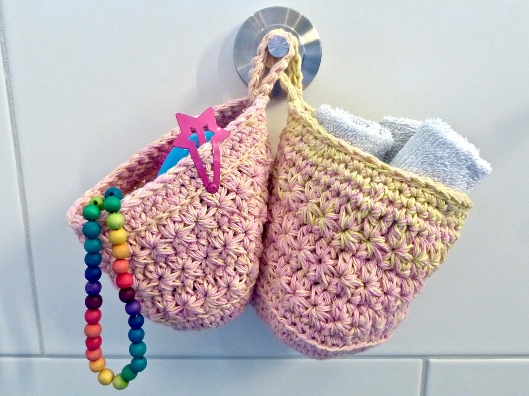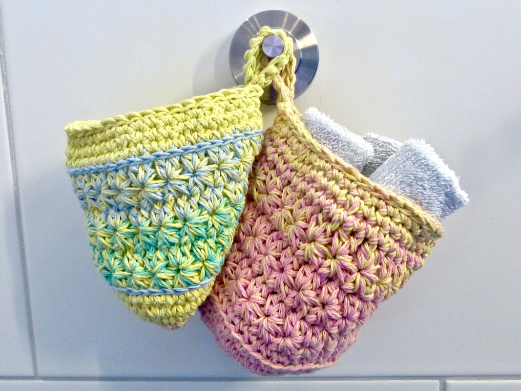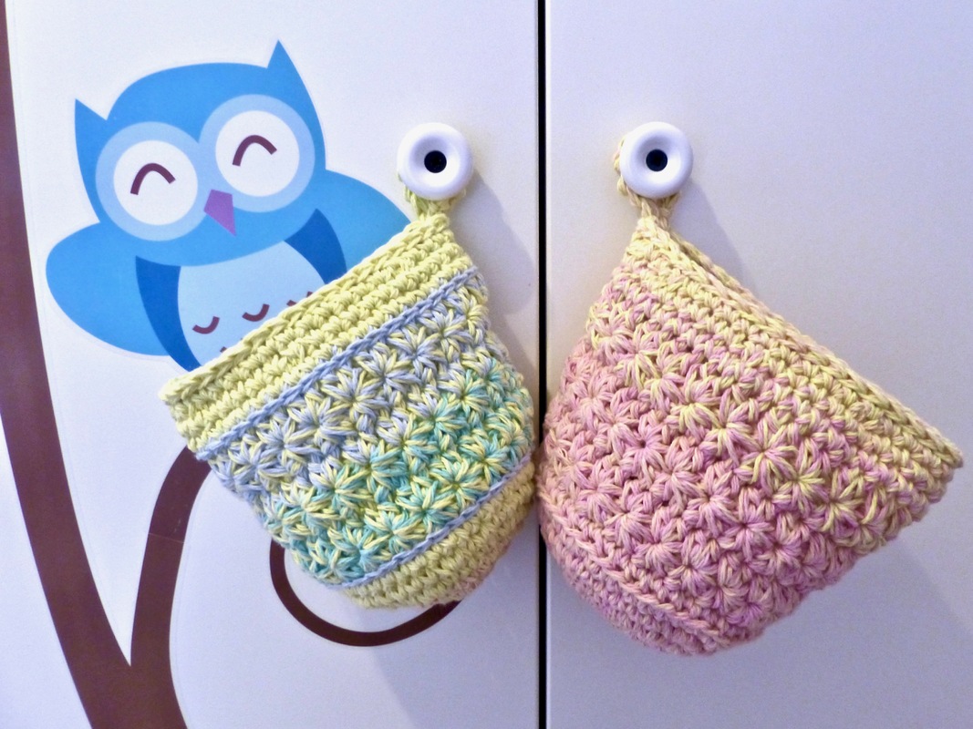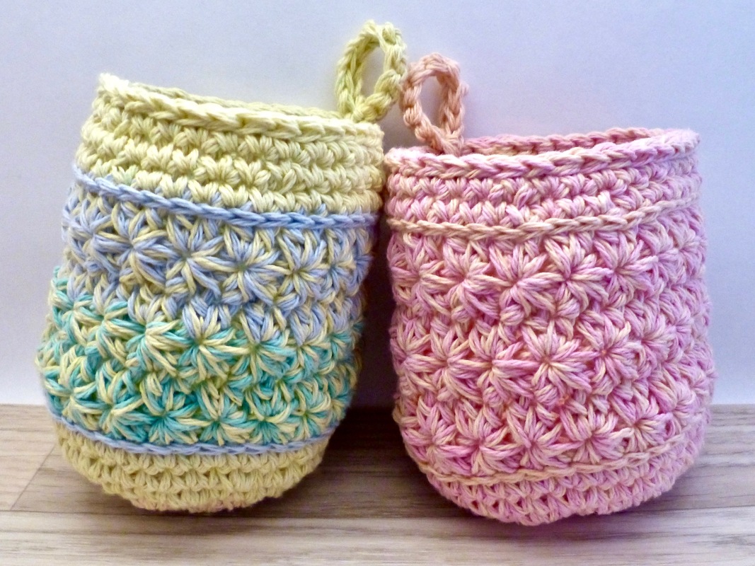 Es wird mit doppeltem Faden gehäkelt und so entstehen durch die Kombination verschiedenster Farben schöne Schattierungen. Das Sternchen-Muster bringt etwas Besonderes mit und macht das Utensilo zu einem schicken Hingucker.