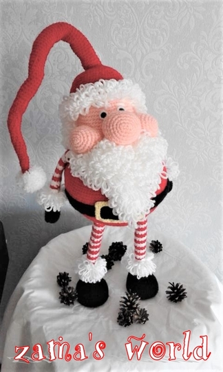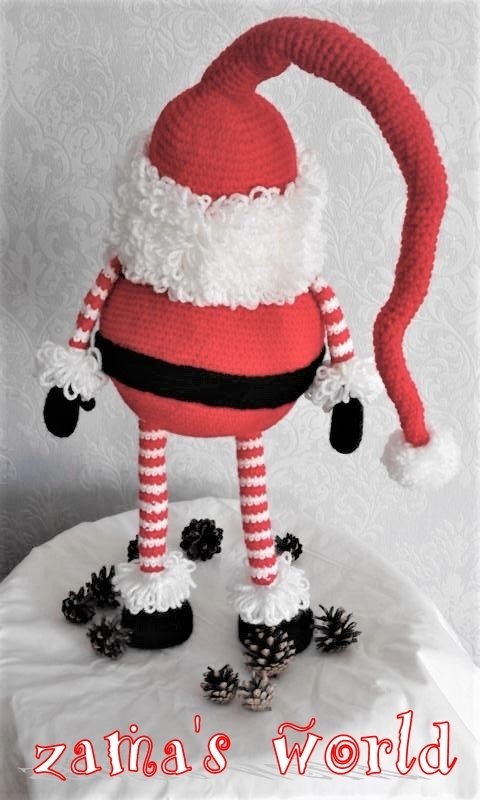 Mein Wichtel misst circa 50 cm (bis zur Mützenbiegung gemessen) und wurde mit einer Häkelnadel der Stärke 2,75 gefertigt.