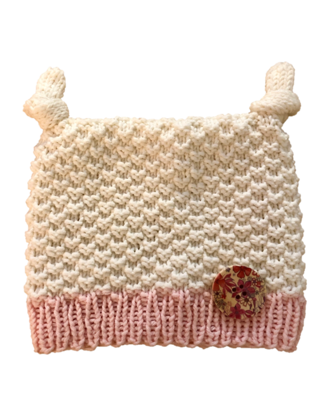 Die Baby-Mütze wird im großen Perlmuster gestrickt, dass wunderbar für Anfänger geeignet ist.