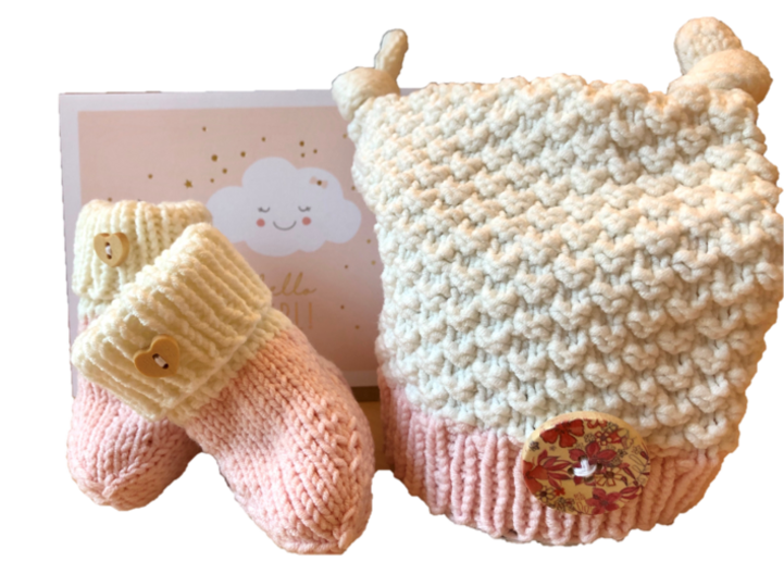 Diese Strickanleitung für die süße Baby-Mütze mit zwei Knötchen ist sehr leicht zu stricken und ein echter Hingucker. Passend dazu die süßen Baby-Söckchen.