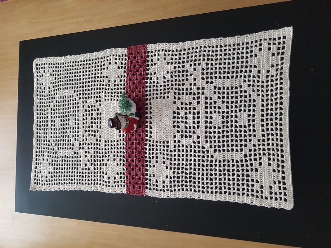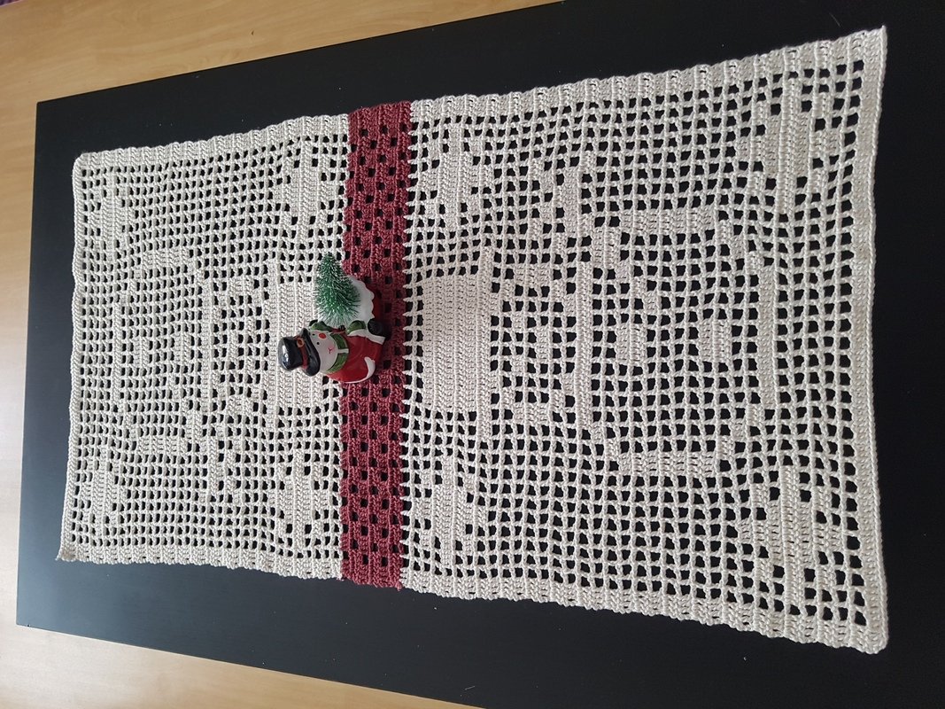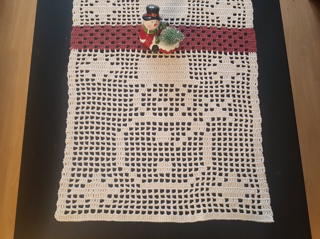 Häkelanleitung für einen schönen Tischläufer mit einem Schneemann, passend zur Winter- und Weihnachtszeit. :)