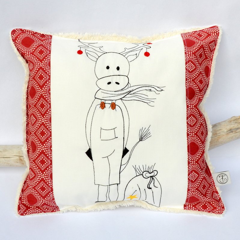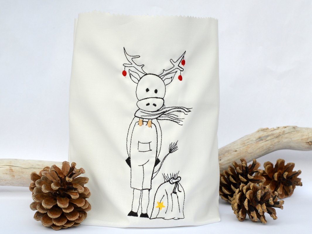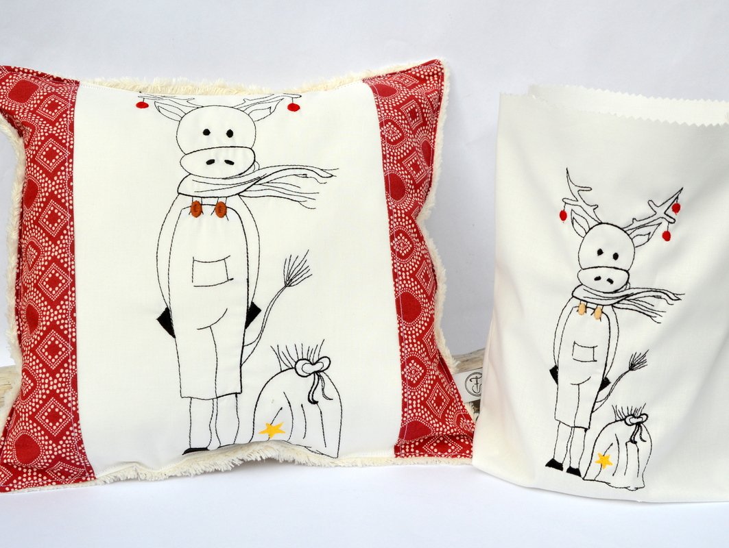 Elch im Einfachlaufstich als Redwork Stickdatei, schnell gestickt auf Kissen, Taschen, Nikolausbeutel.