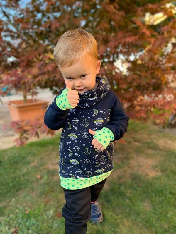 Der coole Pulli mit kuscheligem Kragen und Daumenloch-Bündchen hat eine raffinierte Ärmel-Teilung, die besonders gut für die Verarbeitung von Panelen geeignet ist!