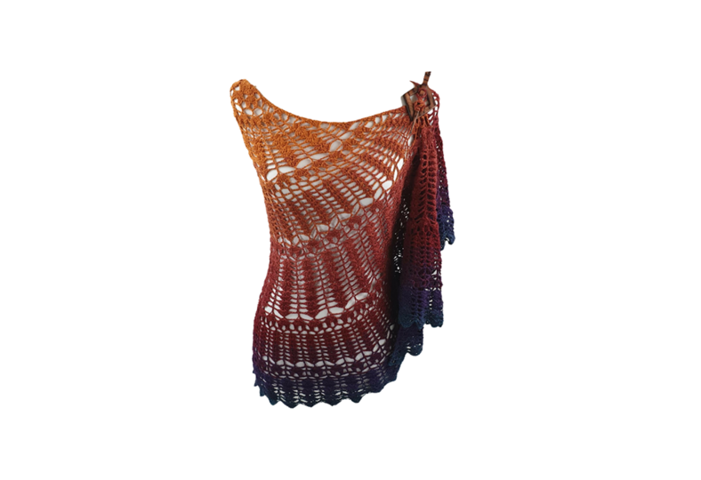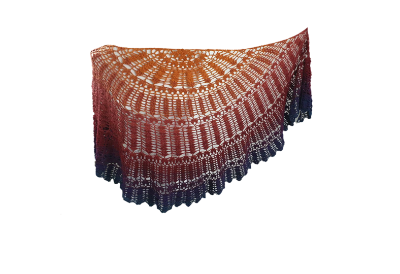 Königin der Sonnenuntergänge, das Tuch mit einer besonderen Form. Sei du die Königin, genieße einen romantischen Abend mit dem Tuch „Königin der Sonnenuntergänge“. Durch die halbrunde Form ist es ein absolutes Must have. Also ran an deine Häkelnadel.