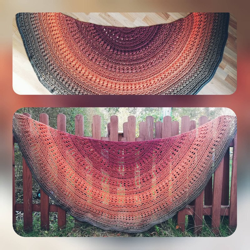 Du kannst jedes Material mit passender Nadelstärke verwenden. Im Probehäkeln haben wir Farbverlaufsgarn mit 900m, 1000m und 1050m verwendet.