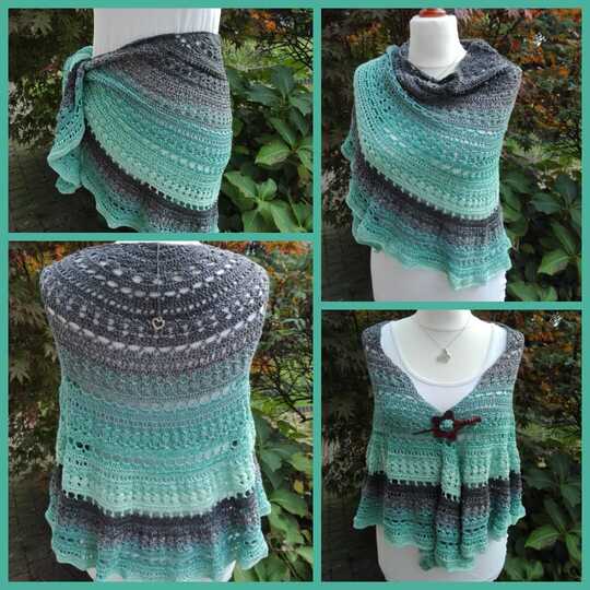 Eine Anleitung, 2 großartige Stücke. Du kannst dir aus dieser Anleitung entweder ein halbrundes Tuch häkeln oder eine schicke Weste.