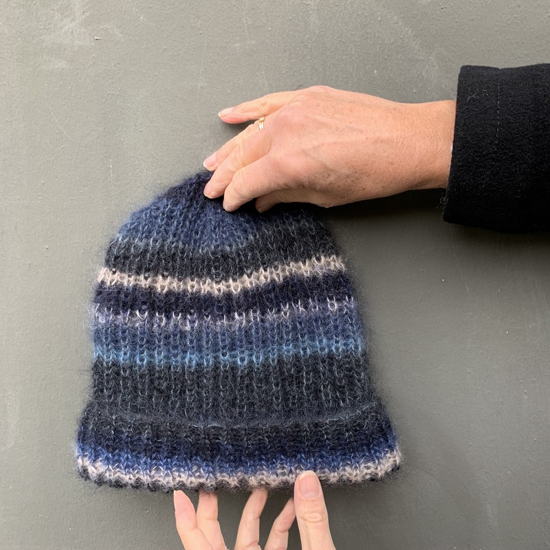 Die Mütze wird von unten nach oben gestrickt und hat einen schönen Farbverlauf.
