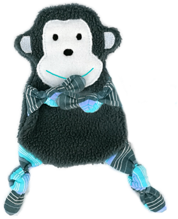 Hier kommt ein witziger Affe als Kuscheltuch. Er ist ein treuer Begleiter und freut sich über Streicheleinheiten.
