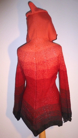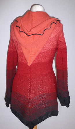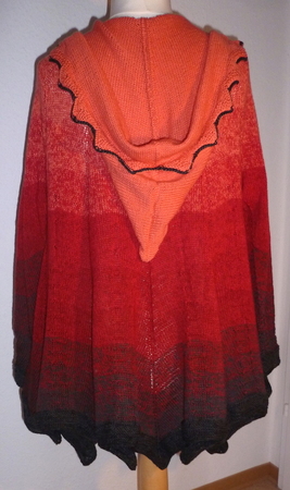 Garnverbrauch für Gr. 42/44: 1400 m plus 250 m uni für die Kapuze (oder insgesamt 1650 m), für die Ärmel zweimal 180 m. Für jede Größe mehr oder weniger 100-200 m mehr oder weniger rechnen!