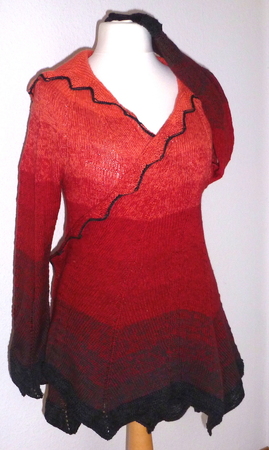 Zum Nacharbeiten dieser Strickjacke solltet ihr schon etwas Strickerfahrung haben. Gefragt sind rechte und linke Maschen, auch verschränkt, sowie verschiedene Zu- und Abnahmen. Außerdem sollten ihr Kettmaschen häkeln können. Das alles wird erklärt in der bebilderten 14-seitigen PDF-Anleitung.