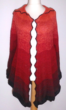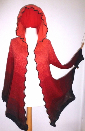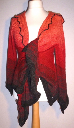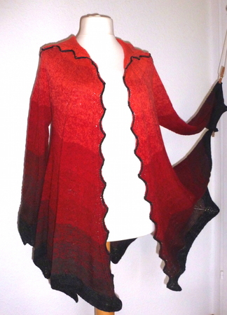 Schwungvoll mit Zipfeln lässt sich diese Kapuzen-Strickjacke offen, gewickelt oder auch geknotet tragen.