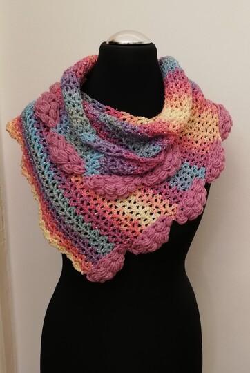 Luftmaschen,Kettmaschen,Stäbchen, Reliefstäbchen von vorne und hinten eingestochen,Büschelmaschen 4-fach