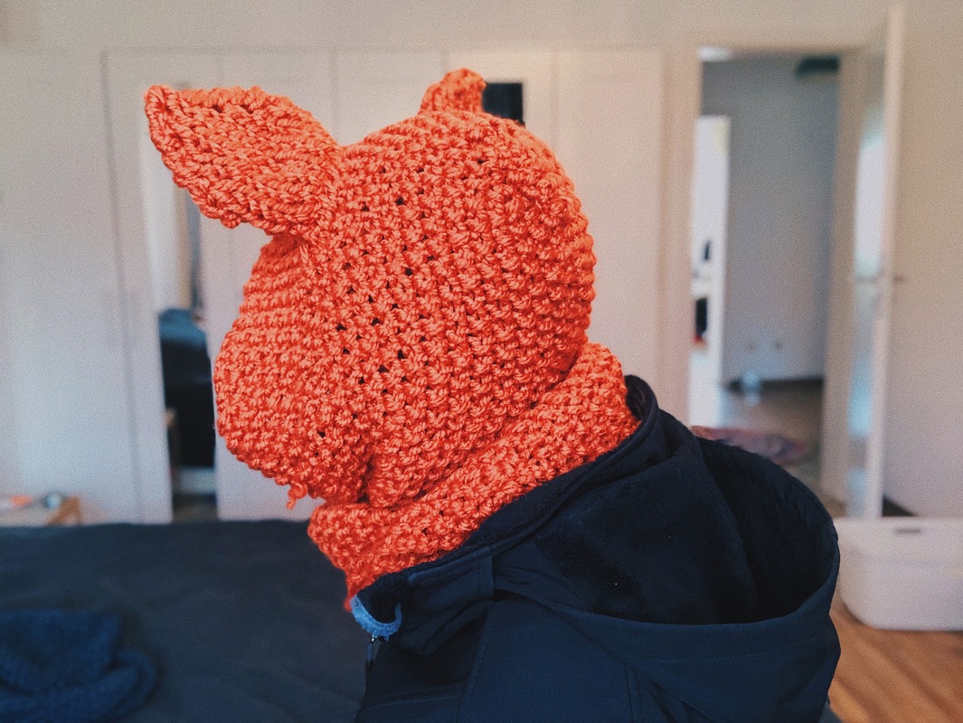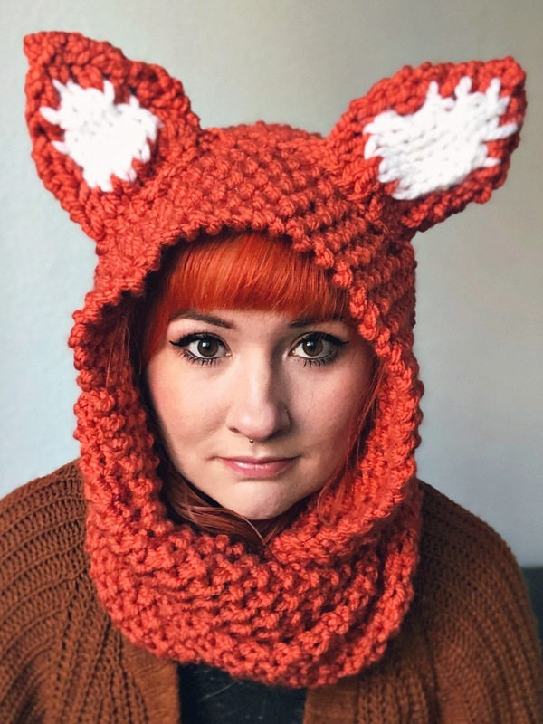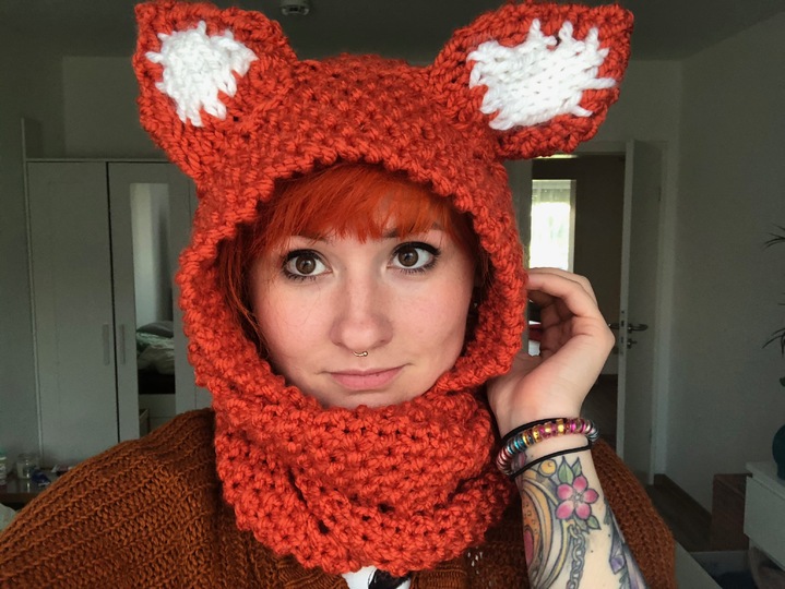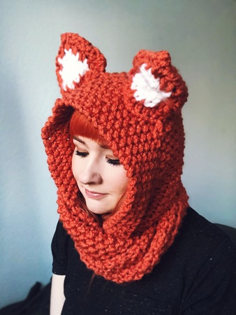 Ein absolut warmhaltender Hingucken für diesen Winter. Ein dicker, im Perlmuster gestrickter Fuchsschal, der für wirklich kalte oder nasse Tagen eine integrierte Kapuze dabei hat.
