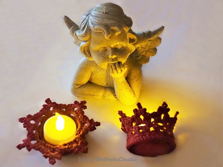 Diese hübschen Teelichter sorgen für weihnachtliche Stimmung. Als Stern oder in Krönchenform, du kannst sie dir individuell anfertigen. Ein paar Wollreste genügen und schnell hast du eine schöne Tischdeko.