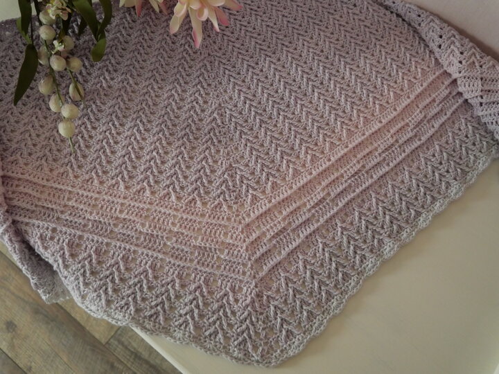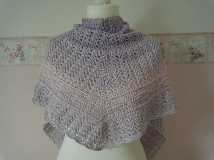 Mein Tuch "Romantica" besteht aus Stäbchen und vorderen Reliefstäbchen und hat dadurch einen leichten 3D-Charakter. Die Form des Tuchs ist schmal und länglich. Außerdem beinhaltet die Anleitung die Beschreibung für ein Tuch mit langer Spitze.