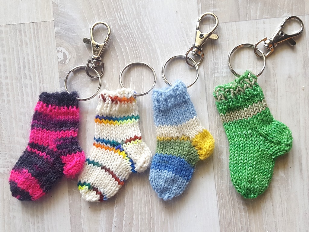 Strickanleitung Taschenbaumler, Schlüsselanhänge Socke für Einkaufswagen-Chip