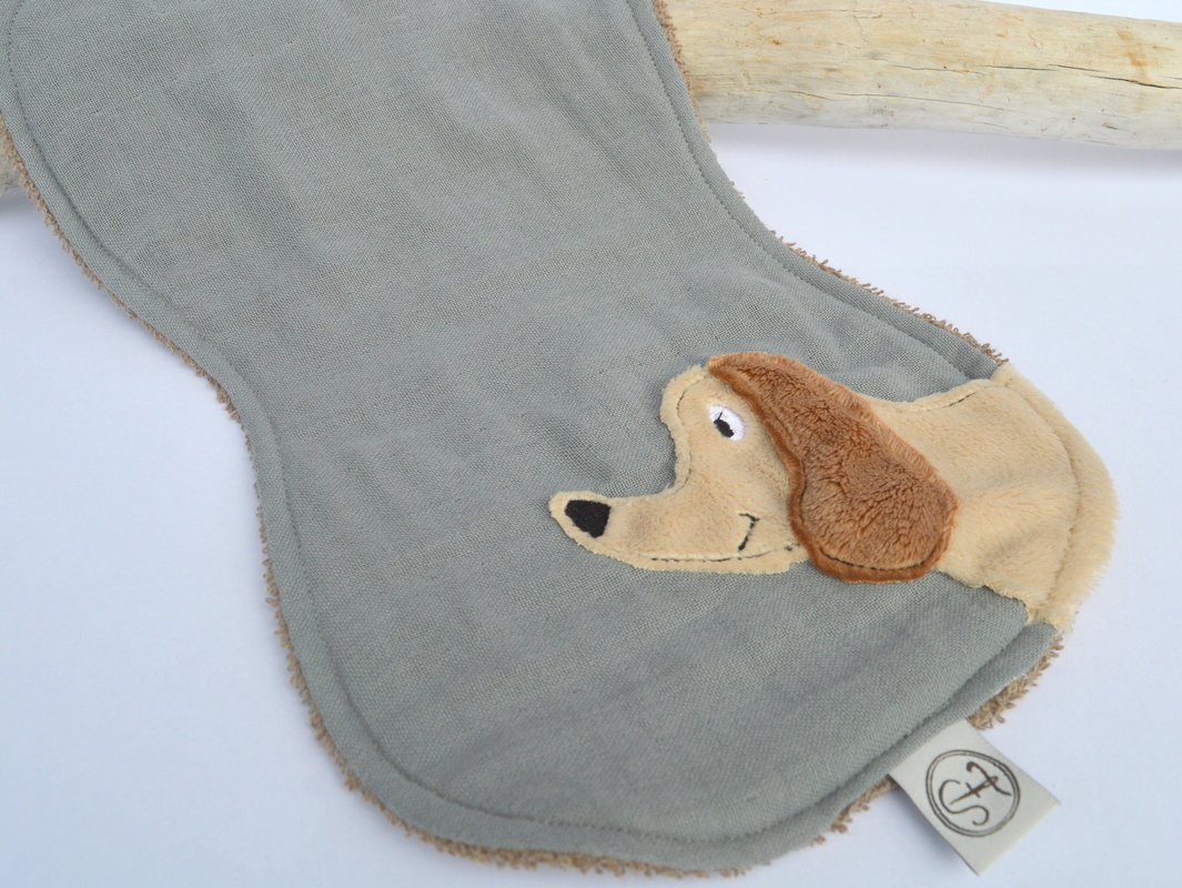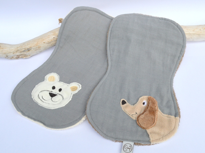 Dem ZIP sind 3erlei Varianten enthalten: Spucktuch blanko, mit Dackel Anton und mit einem Bär.