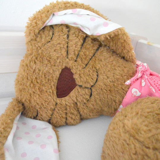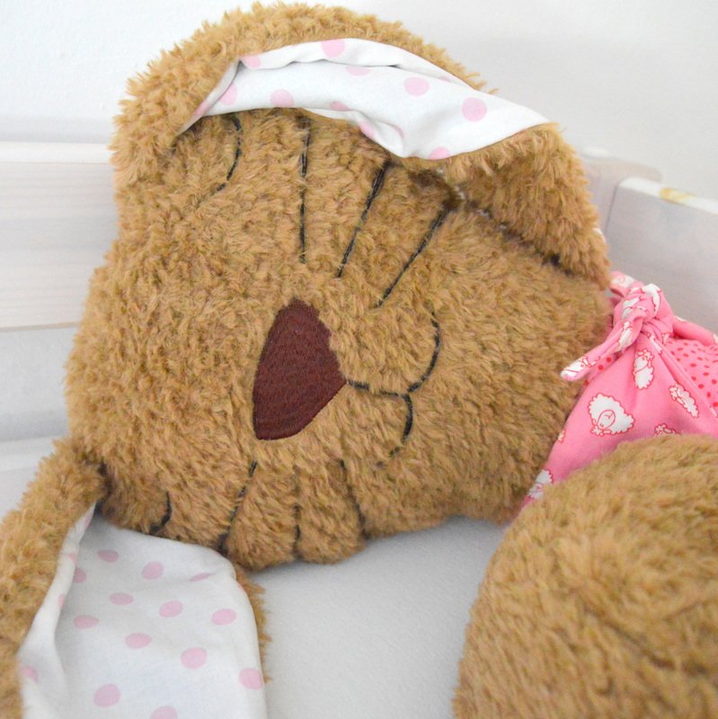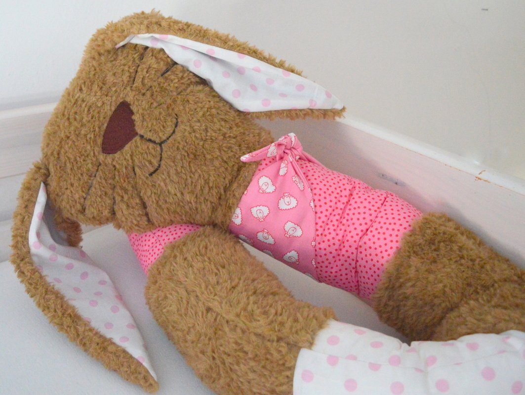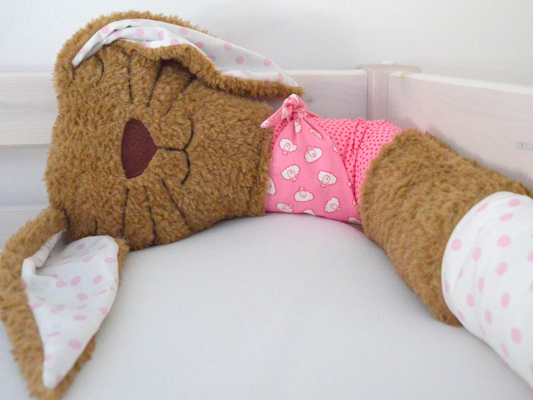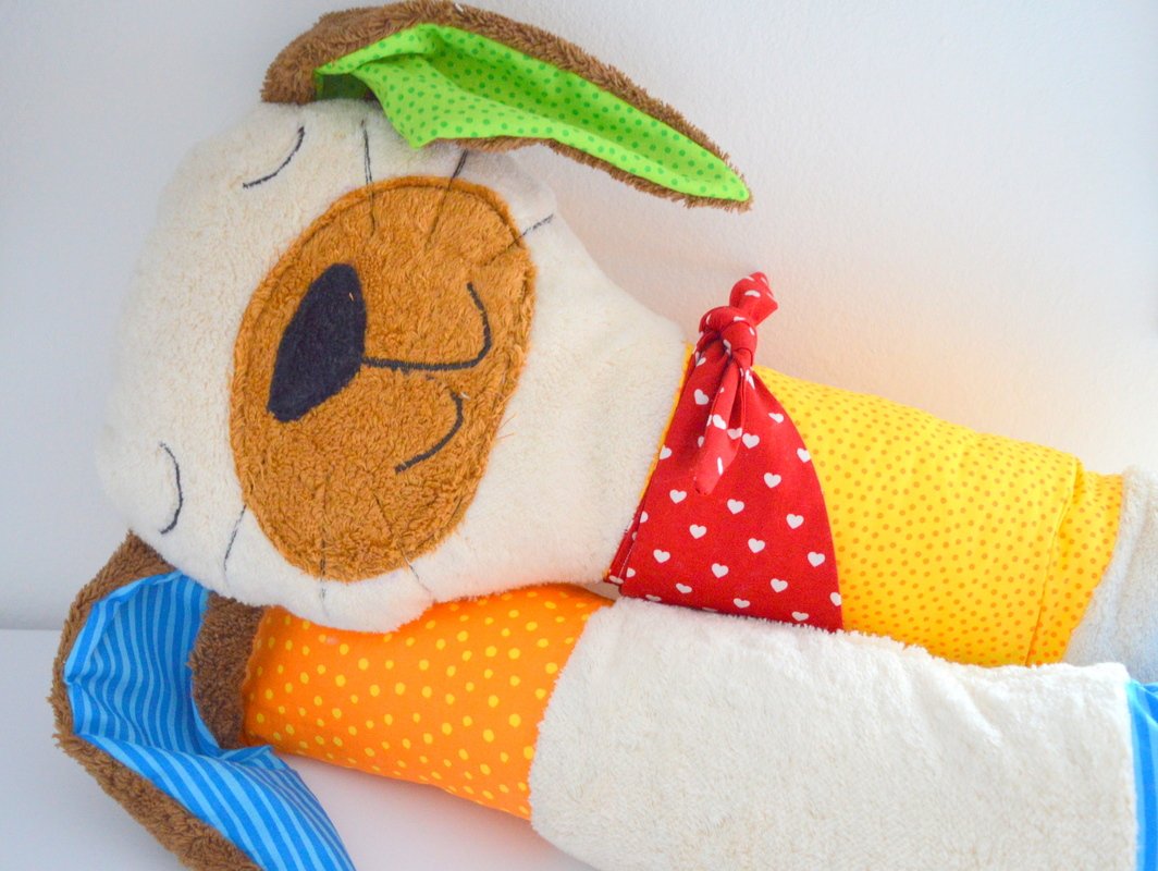 Mein Hase Oskar als Bettschlange, eine wunderbare Ergänzung zum eBook Hase Oskar als Kuscheltier. Die Anleitung enthält viele Bilder und kann Schritt für Schritt nachgenäht werden.