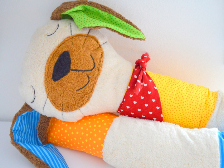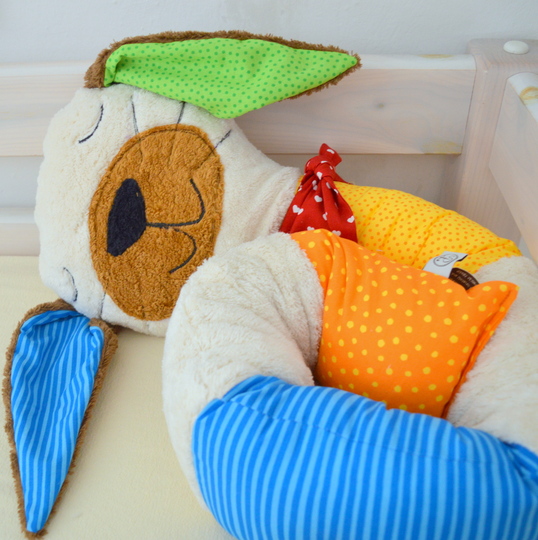 Er hoppelt durch den Wald, auf der Suche nach seinem Spielgefährten. Er mag es kuschelig und warm und rollt sich nachts gerne zusammen. Hase Oskar als Bettschlange, er wacht über eure Träume und schützt euer Köpfchen im Schlaf vor Stößen. Krault ihn hinter seinen großen Hängeohren oder lehnt euren Kopf an seinen Kopf, dann ist er zufrieden und glücklich.