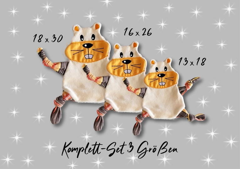Stickdatei Hamster Kuscheltuch in drei Größen als Komplett-Set