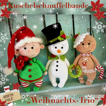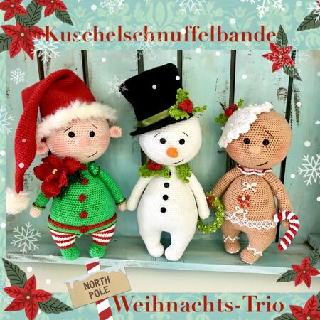 Kuschelschnuffelbande Weihnachts-Trio, besteht aus den drei folgenden Anleitungen:
