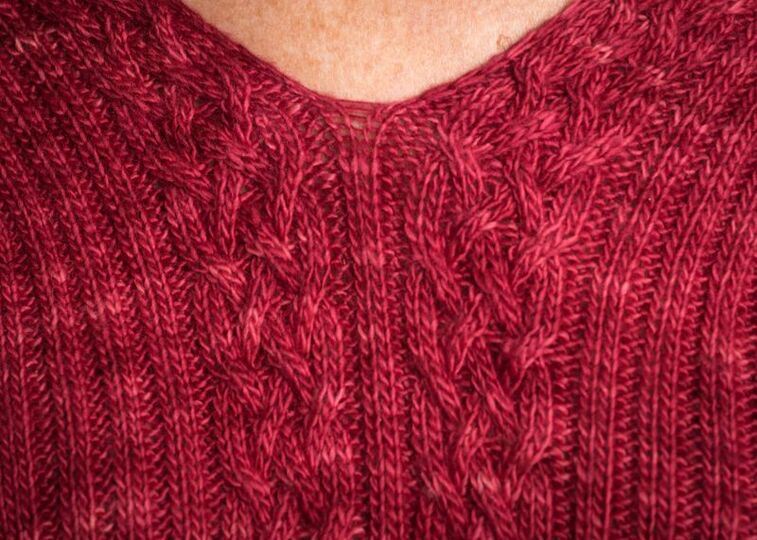 Ein toller Pullover für alle, die es gerne warm und kuschelig haben. Der V-Auschnitt-Pullover hat ein interessantes Zopfmuster in Vorder- und Rücketeil, das sich beim Vorderteil in einen V-Ausschnitt und im Rückenteil in einen Einsatz aus linken Maschen und einem kleinen Zopf aufteilt. Die Bündchen werden in einem einfachen Hebemaschenmuster gearbeitet.. Gestrickt wird der Pullover in Einzelteilen - wer mag, kann natürlich den unteren Teil bis zu den Armausschnitten in Runden stricken.