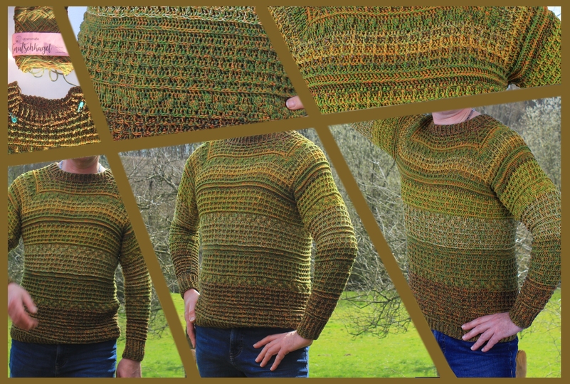 Auf der Suche nach einem etwas ausgefalleneren Pullover für Männer, die es nicht so langweilig, aber auch nicht zu extravagant mögen, ist nach vielem Ausprobieren dieses schöne Teil entstanden.