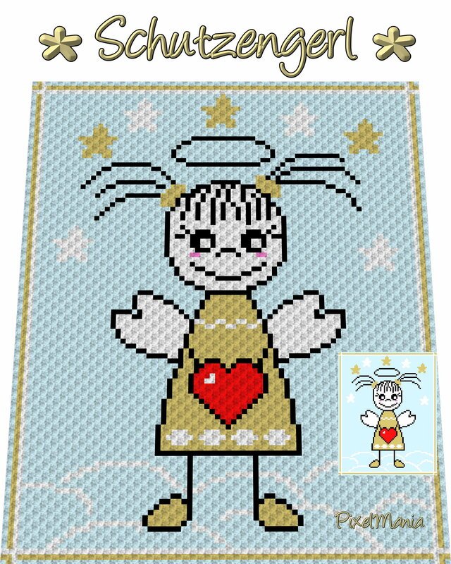 Schutzengerl ist ein digitales Diagramm, das für verschiedene Häkeltechniken verwendet werden kann, wie Ecke zu Ecke = C2C, Mini C2C, feste Maschen, halbe Stäbchen, Stäbchen, tunesisch häkeln, Bobble Stitch. Alternativ kann dieses Produkt auch für Kreuzstich, Stricken, Hamma-Perlen, Kunststoff-Leinwand und andere Projekte verwenden werden.