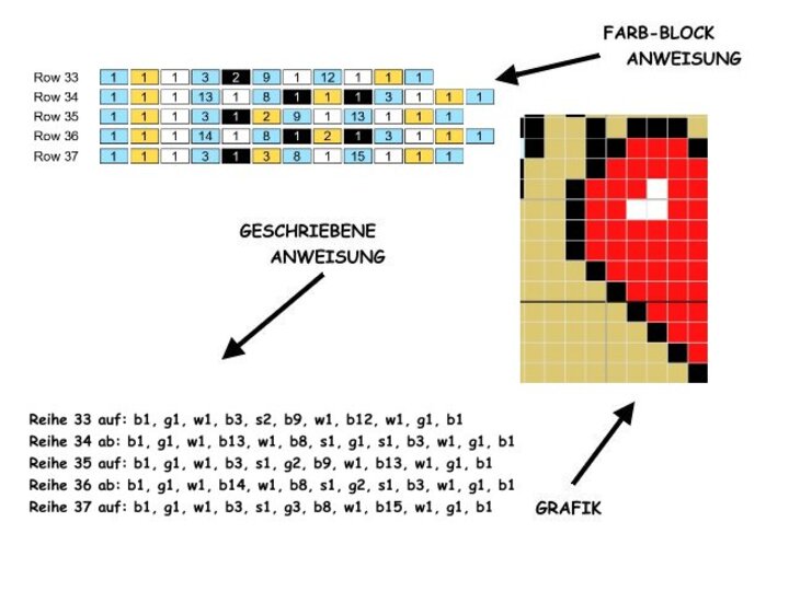 -farbige Zahlen-Blöcke für jede Zeile für C2C-Technik