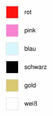 blau 18Kn, weiß 5Kn, gold 3Kn, schwarz 2Kn, rot & pink je 1Kn