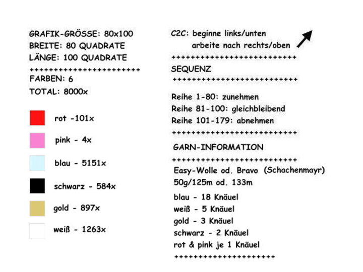 Die genaue Anleitungen zur HÄKELTECHNIK C2C (Ecke zu Ecke) erhältst du GRATIS in meinem Shop!!!