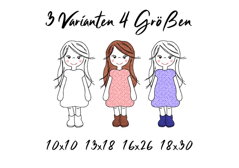 Stickdatei Girl Applikation in vier Größen und drei Stickvarianten