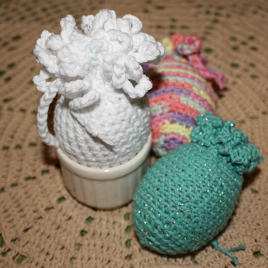 Süße Eierwärmer oder auch Osterschmuck aus festen Maschen gehäkelt.