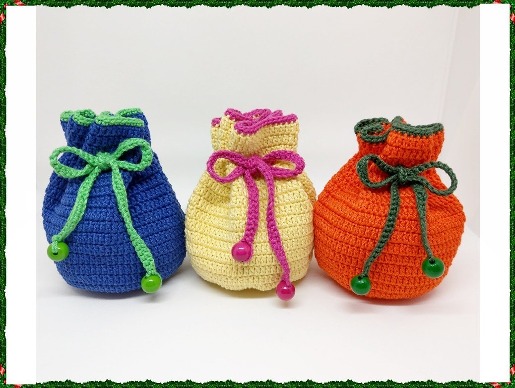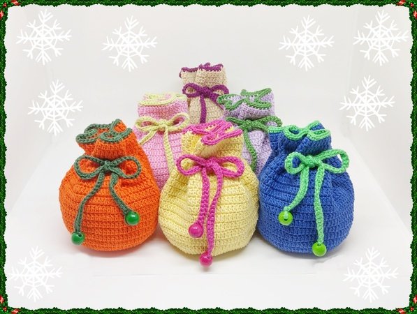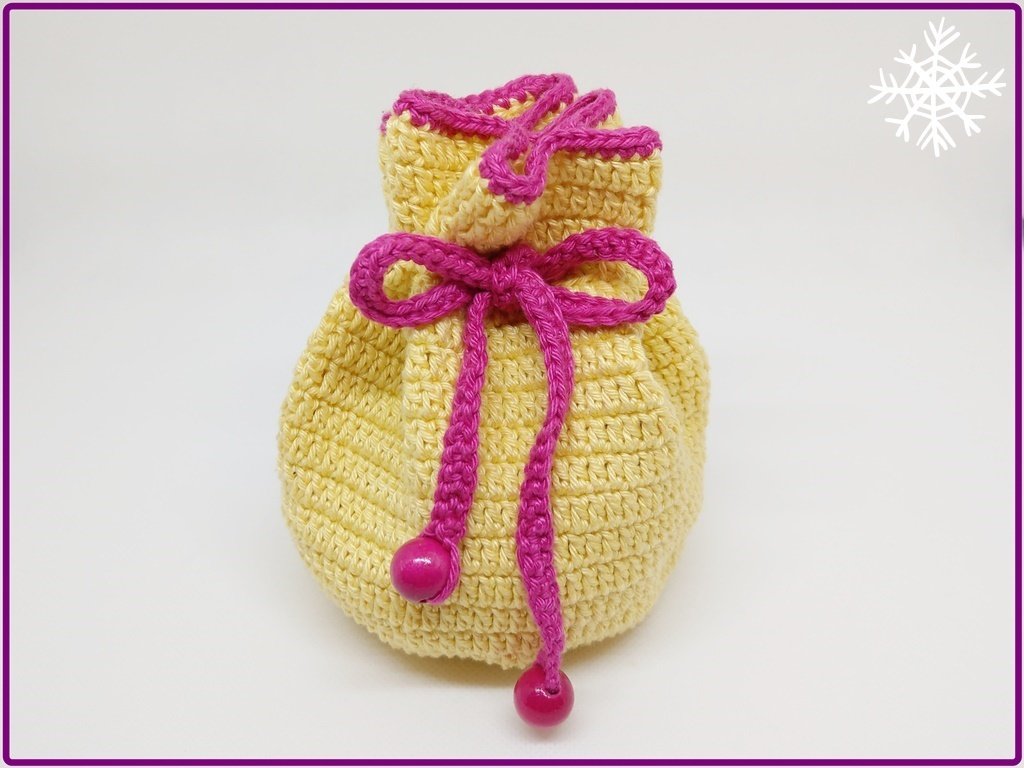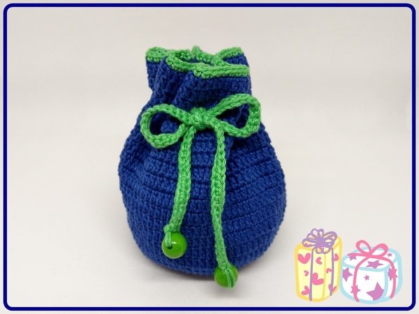 Mit angegeben Garn werden die Säckchen ca. 12 cm groß.