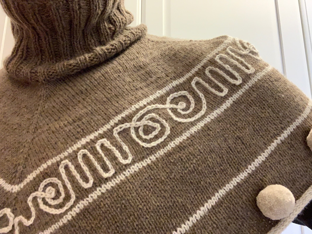 Dieser schöne Schulterwärmer / Miniponcho erinnert mit seinem aufgehäkeltem Kettmaschenmuster an die Nazca-Linien, die riesigen Scharrbilder in der Wüste bei Nazca in Peru. Mit den ergänzend applizierten Pompoms bekommt der Schulterwärmer einen folkloristischen, gleichzeitig aber edlen Chic. Ich verwende die KashWool von Katia, du kannst aber auch jede andere Wolle in entsprechender Stärke und Farbe deiner Wahl benutzen. Durch die Kaschmir-Beimischung im Garn schmiegt sich dieses kuschelweiche Werk sehr angenehm um den Hals und die Schultern, und wärmt, ohne das man schwitzt. Du kannst natürlich auch andere Farben miteinander kombinieren (grau/weiss oder blau/rot beispielsweise).
