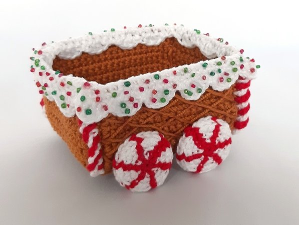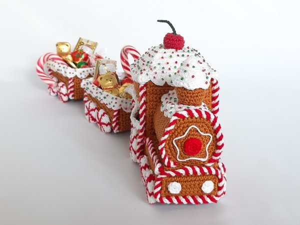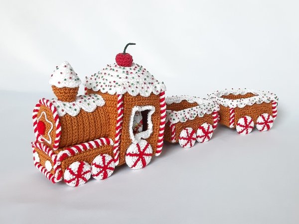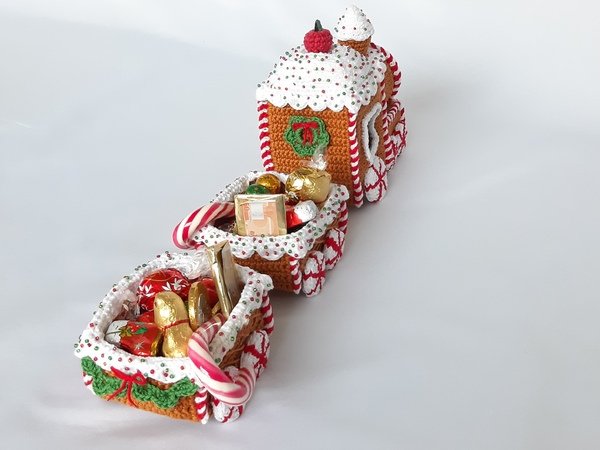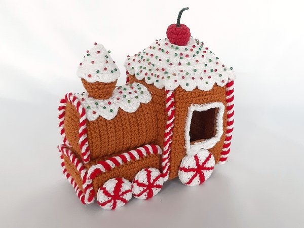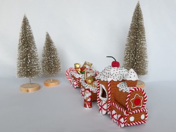 Mit der angegebenen Wolle und Nadelstärke ist der fertige Zug in etwa 42 cm lang, 10 cm breit und 15 cm hoch.