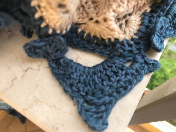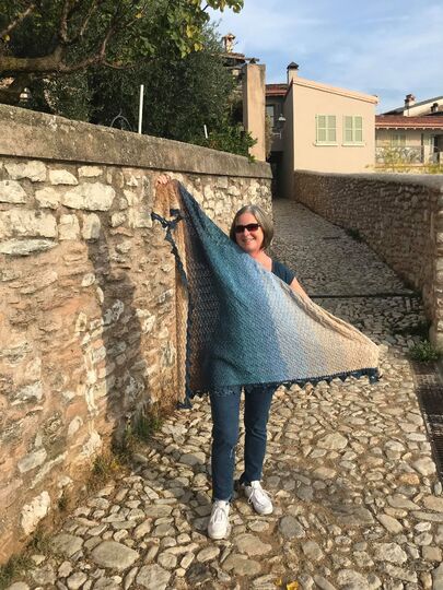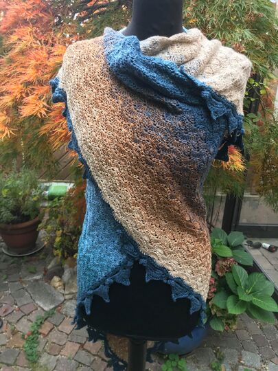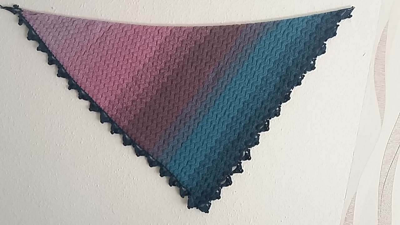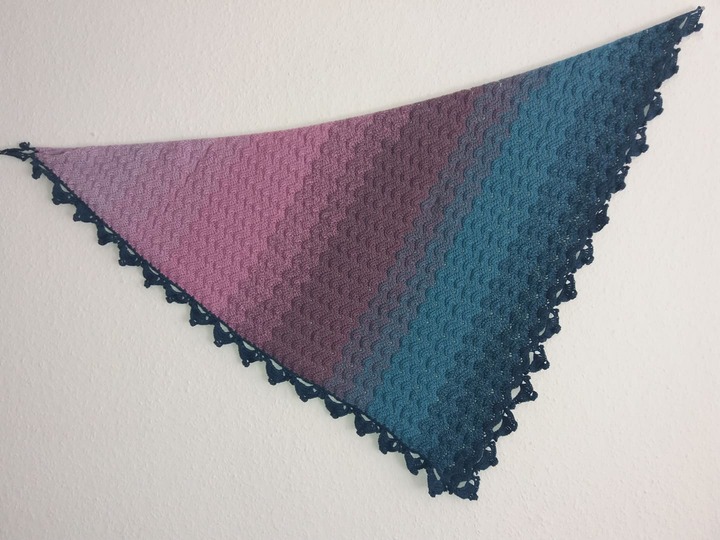 Hier erhältst du die Anleitung für ein asymmetrisches Dreieckstuch, mit tollem, eingängigem Muster und einem Delfinabschluss.
