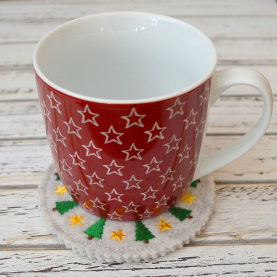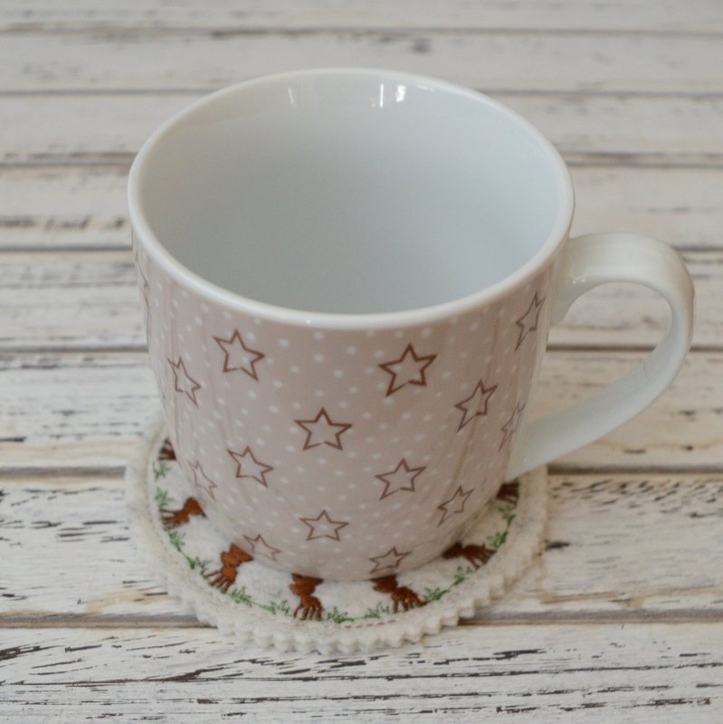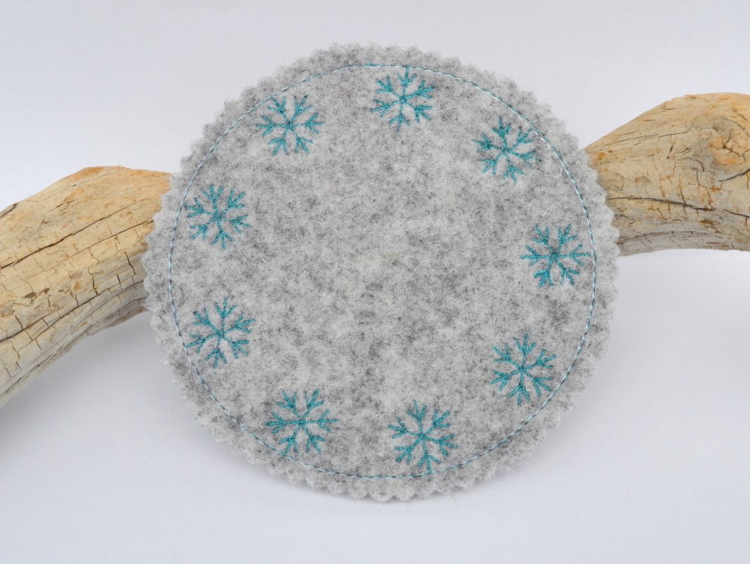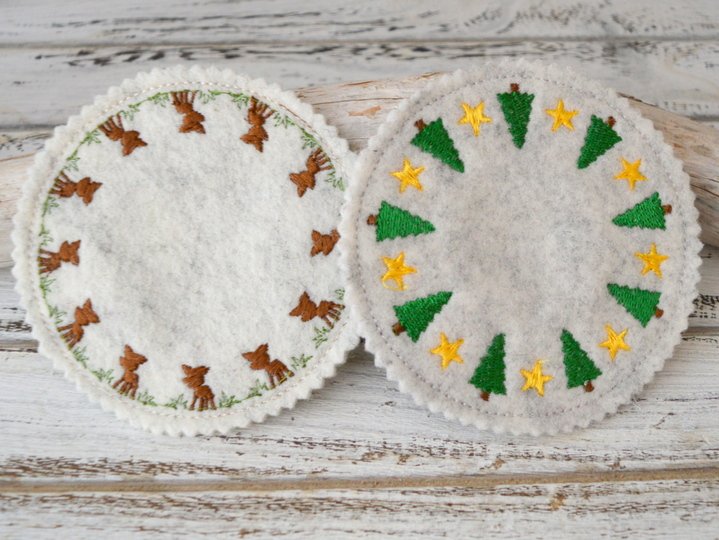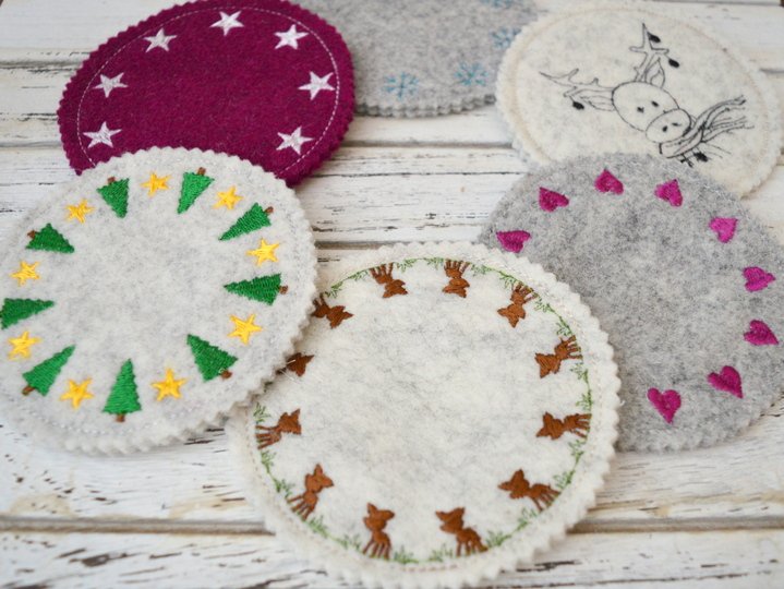Schnell gestickte Untersetzer mit weihnachtlichen Motiven. Eine liebevolle Deko auf dem Adventstisch, gestickt auf Wollfilz oder Stickfilz.