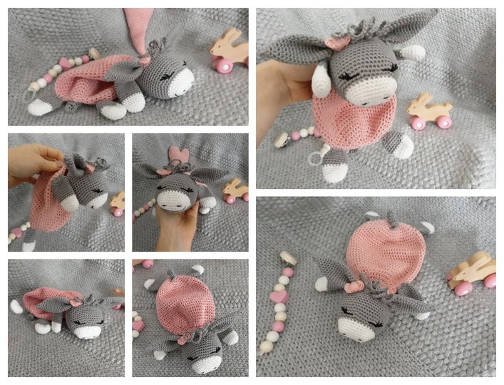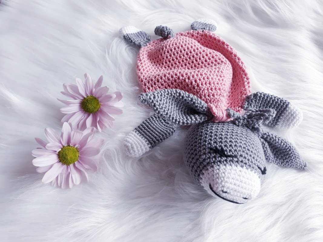 Schmuseesel Bella ist die ideale, knuffige Begleiterin für alle Neugeborene. Mit dieser kleinen Eseldame können die neuen Erdenbürger Kuscheln, Träumen, Schlafen und Spielen.