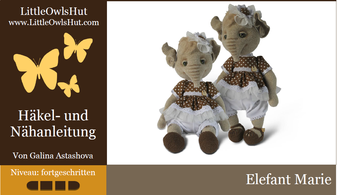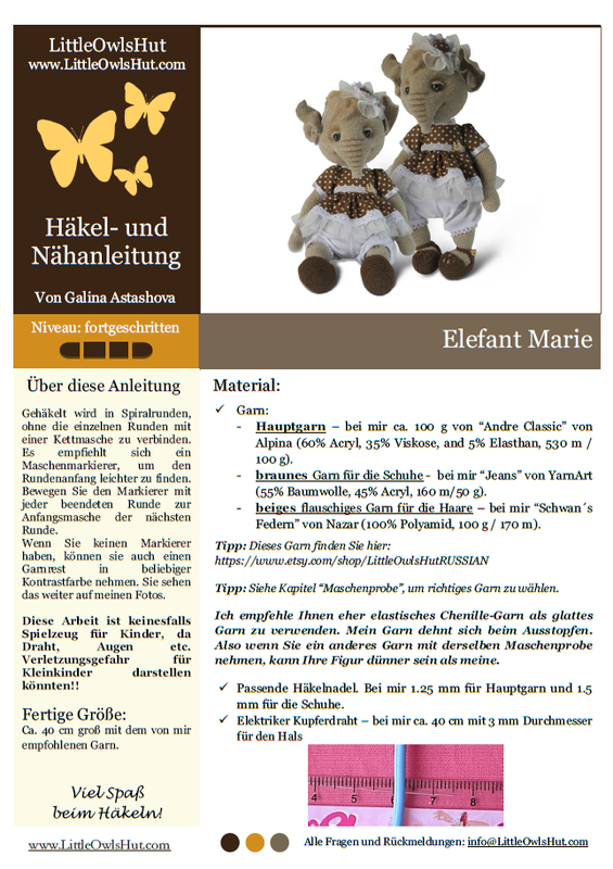 Größe: Mit dem von mir empfohlenen Garn ist der Elefant ca. 40 cm groß