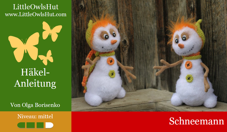 Größe: Mit dem von mir empfohlenen Garn ist der Schneemann ca. 20 cm groß