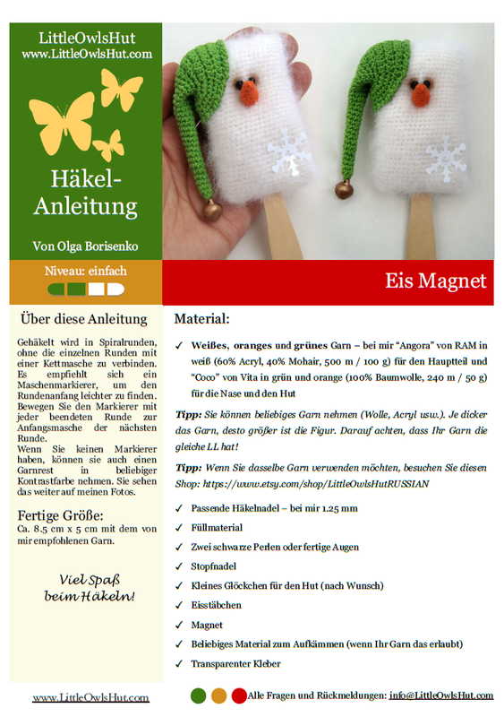 Größe: Mit dem von mir empfohlenen Garn ist das Eis ca. 8,5 x 5 cm groß