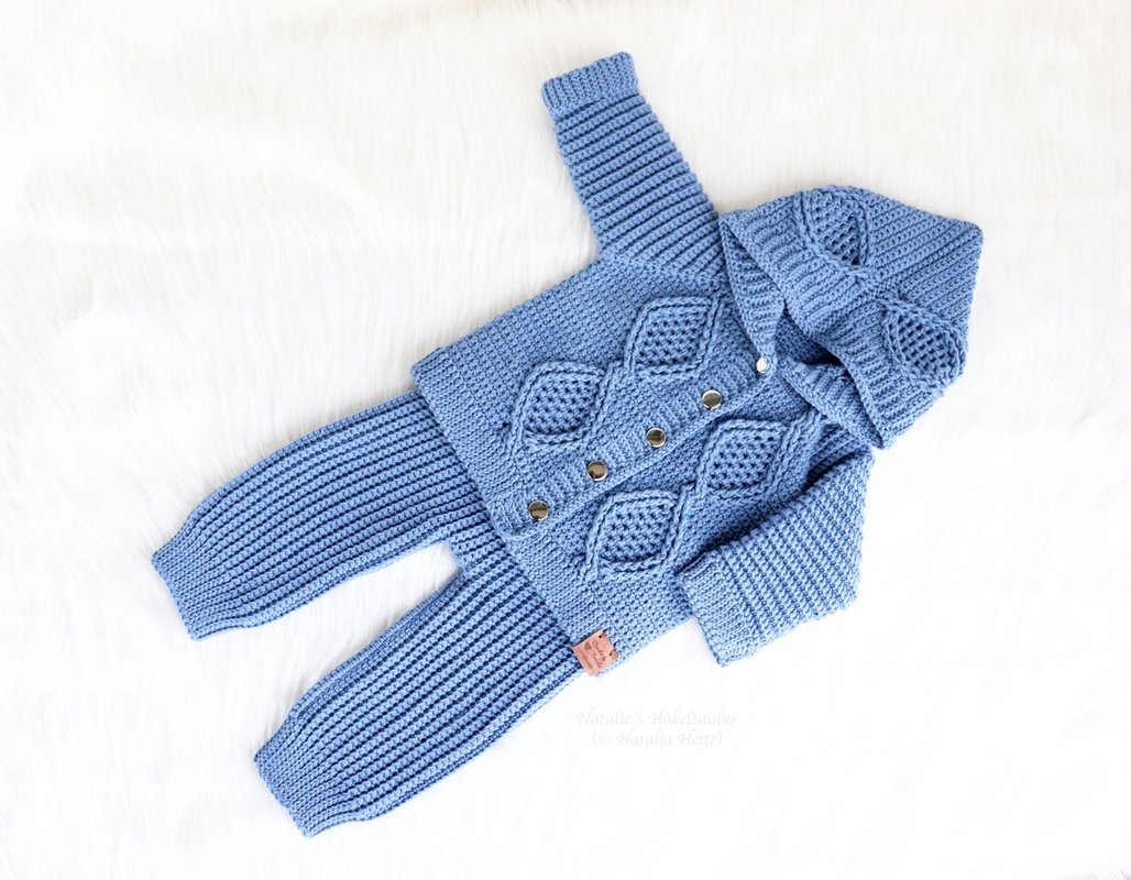 Jacke: https://www.crazypatterns.net/de/items/55433/baby-kinderjacke-jan-gr-50-116-raglan-zopfmuster