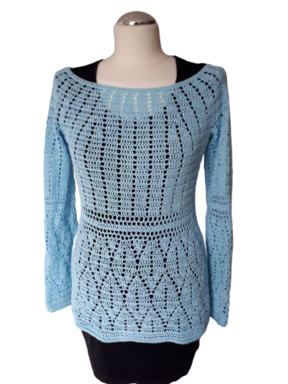 Beim vorgestellten Produkt handelt es sich NICHT um das fertig gehäkelte Kleidungsstück, sondern um eine Anleitung in Schriftform mit Häkelschrift, um dieses Kleidungsstück selbst zu häkeln.