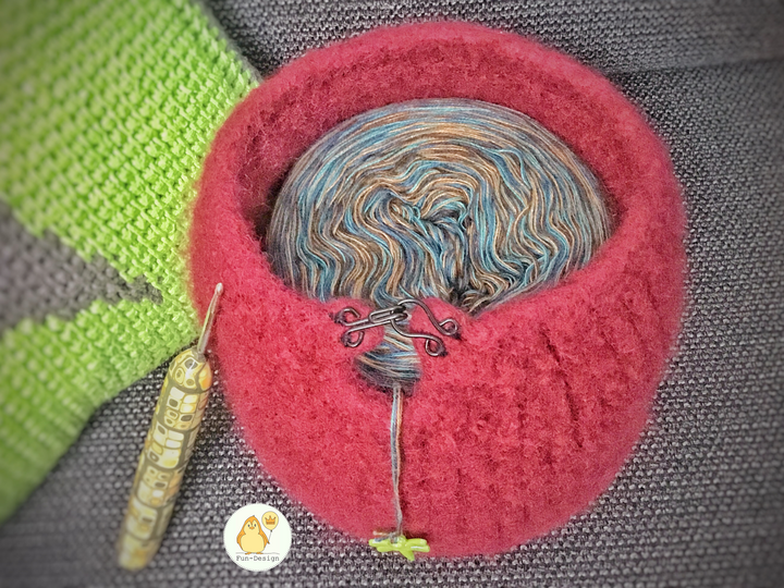 Dann häkele dir doch einfach ein passendes Körbchen aus Filzwolle dazu.